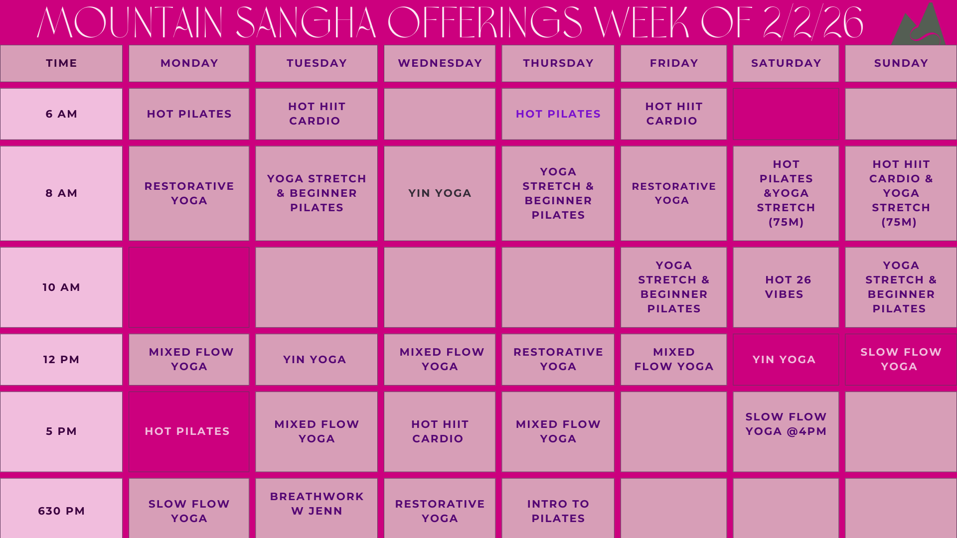 *Space is limited and classes may be subject to cancellation dependent upon class sign ups, so book online to reserve your spot.